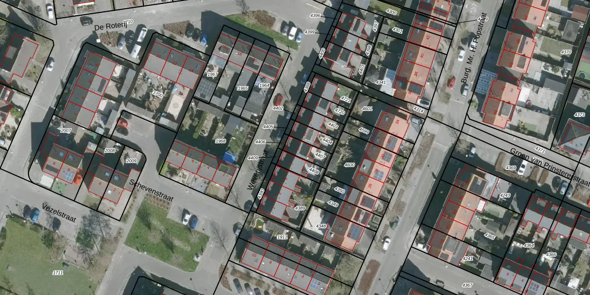 Gebruik de zoekbalk of klik op een perceel voor informatie over de adressen binnen dit perceel.