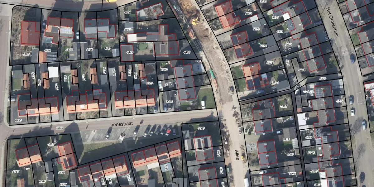 Het perceel waarop Allee 49 staat heeft een oppervlakte van 348 m². Dit is een groot perceel. De perceeloppervlakte wordt geregistreerd door het Kadaster. Gedetailleerde informatie over de maten van dit perceel kunt u vinden in het rapport Kadastrale kaart met maatvoering van Allee 49.