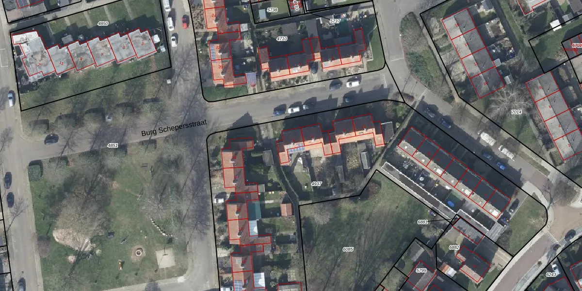 Het perceel waarop Burg Schepersstraat 4 staat heeft een oppervlakte van 4110 m². Dit is een zeer groot perceel. De perceeloppervlakte wordt geregistreerd door het Kadaster. Gedetailleerde informatie over de maten van dit perceel kunt u vinden in het rapport Kadastrale kaart met maatvoering van Burg Schepersstraat 4.