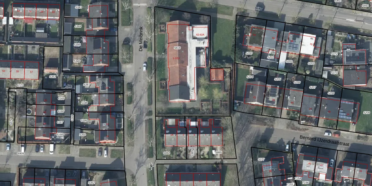 Het perceel waarop De Meibrink 1-10 staat heeft een oppervlakte van 1970 m². Dit is een zeer groot perceel. De perceeloppervlakte wordt geregistreerd door het Kadaster. Gedetailleerde informatie over de maten van dit perceel kunt u vinden in het rapport Kadastrale kaart met maatvoering van De Meibrink 1-10.