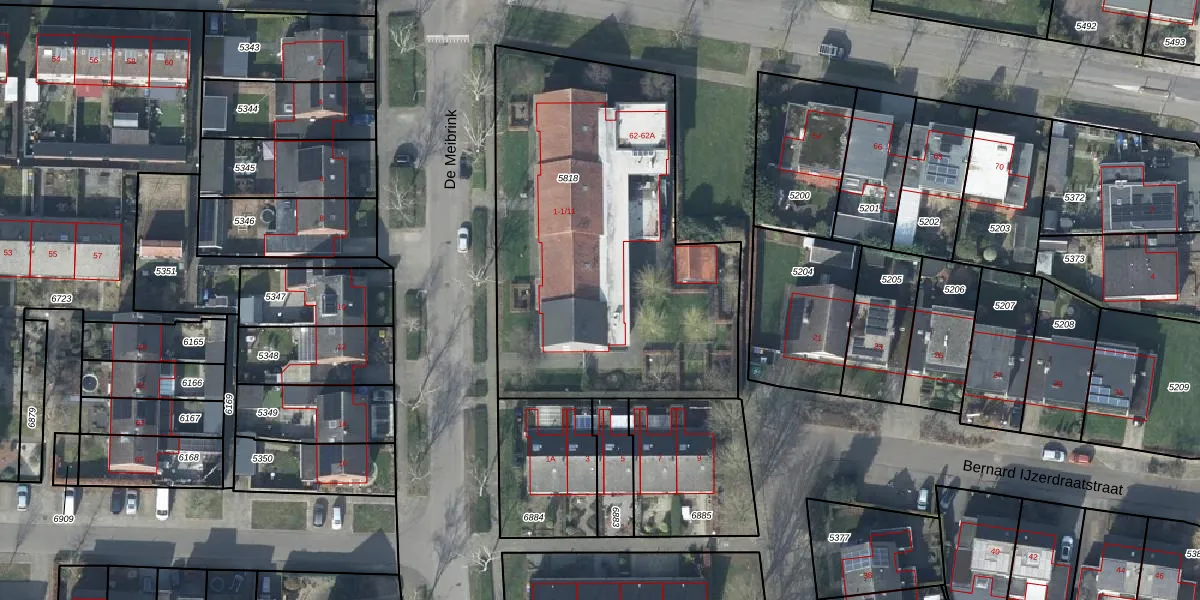Het perceel waarop De Meibrink 1-9 staat heeft een oppervlakte van 1970 m². Dit is een zeer groot perceel. De perceeloppervlakte wordt geregistreerd door het Kadaster. Gedetailleerde informatie over de maten van dit perceel kunt u vinden in het rapport Kadastrale kaart met maatvoering van De Meibrink 1-9.
