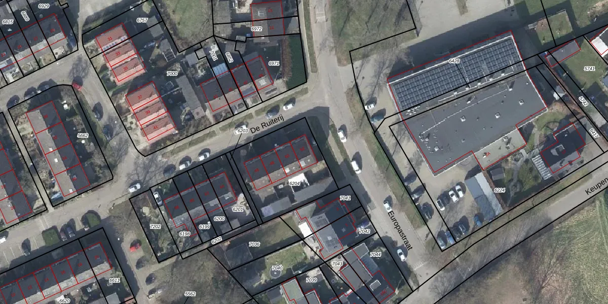Het perceel waarop De Ruiterij 52 staat heeft een oppervlakte van 706 m². Dit is een groot perceel. De perceeloppervlakte wordt geregistreerd door het Kadaster. Gedetailleerde informatie over de maten van dit perceel kunt u vinden in het rapport Kadastrale kaart met maatvoering van De Ruiterij 52.