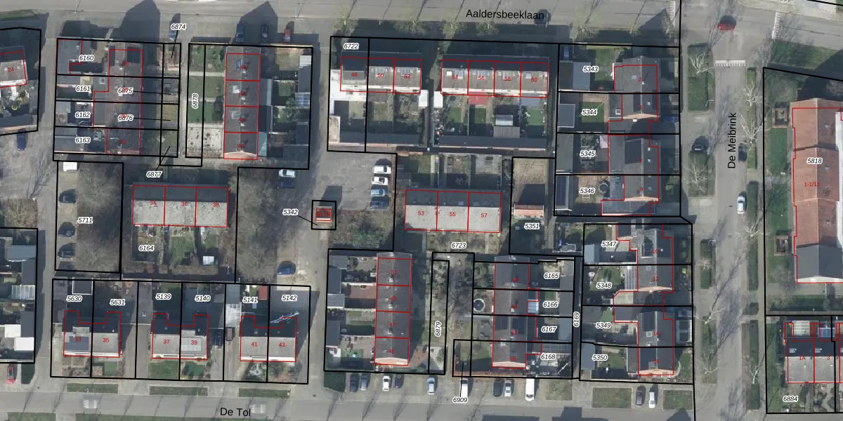 Het perceel waarop De Tol 53 staat heeft een oppervlakte van 2629 m². Dit is een zeer groot perceel. De perceeloppervlakte wordt geregistreerd door het Kadaster. Gedetailleerde informatie over de maten van dit perceel kunt u vinden in het rapport Kadastrale kaart met maatvoering van De Tol 53.
