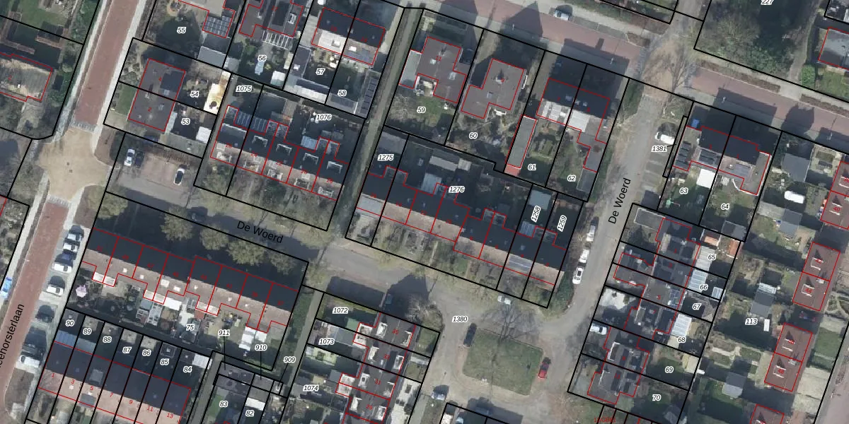 Het perceel waarop De Woerd 12 staat heeft een oppervlakte van 870 m². Dit is een groot perceel. De perceeloppervlakte wordt geregistreerd door het Kadaster. Gedetailleerde informatie over de maten van dit perceel kunt u vinden in het rapport Kadastrale kaart met maatvoering van De Woerd 12.