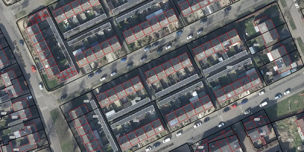 Het perceel waarop Eisenhowerstraat 12 staat heeft een oppervlakte van 1685 m². Dit is een zeer groot perceel. De perceeloppervlakte wordt geregistreerd door het Kadaster. Gedetailleerde informatie over de maten van dit perceel kunt u vinden in het rapport Kadastrale kaart met maatvoering van Eisenhowerstraat 12.