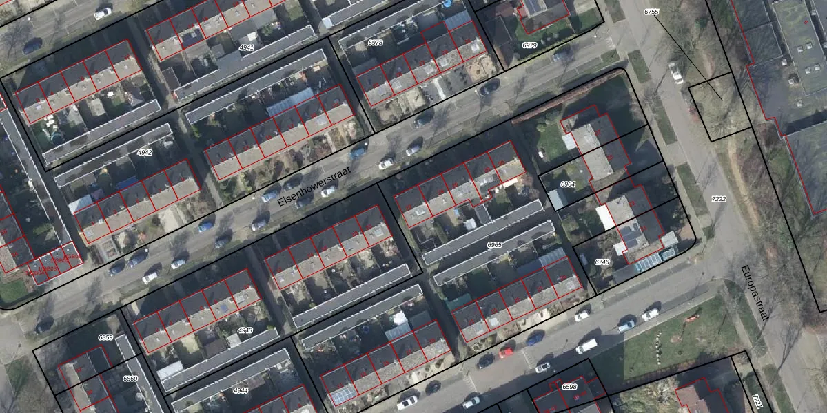 Het perceel waarop Eisenhowerstraat 22 staat heeft een oppervlakte van 3235 m². Dit is een zeer groot perceel. De perceeloppervlakte wordt geregistreerd door het Kadaster. Gedetailleerde informatie over de maten van dit perceel kunt u vinden in het rapport Kadastrale kaart met maatvoering van Eisenhowerstraat 22.