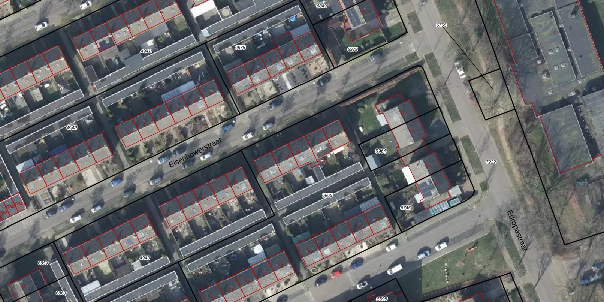 Het perceel waarop Eisenhowerstraat 26 staat heeft een oppervlakte van 3235 m². Dit is een zeer groot perceel. De perceeloppervlakte wordt geregistreerd door het Kadaster. Gedetailleerde informatie over de maten van dit perceel kunt u vinden in het rapport Kadastrale kaart met maatvoering van Eisenhowerstraat 26.
