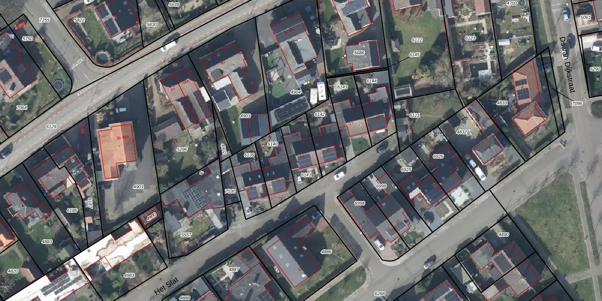 Het perceel waarop Het Slat 13 staat heeft een oppervlakte van 210 m². Dit is een middelgroot perceel. De perceeloppervlakte wordt geregistreerd door het Kadaster. Gedetailleerde informatie over de maten van dit perceel kunt u vinden in het rapport Kadastrale kaart met maatvoering van Het Slat 13.