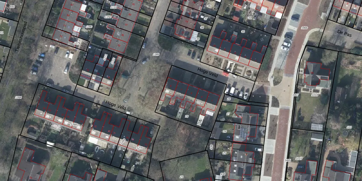 Het perceel waarop Hoge Veld 7 staat heeft een oppervlakte van 915 m². Dit is een groot perceel. De perceeloppervlakte wordt geregistreerd door het Kadaster. Gedetailleerde informatie over de maten van dit perceel kunt u vinden in het rapport Kadastrale kaart met maatvoering van Hoge Veld 7.