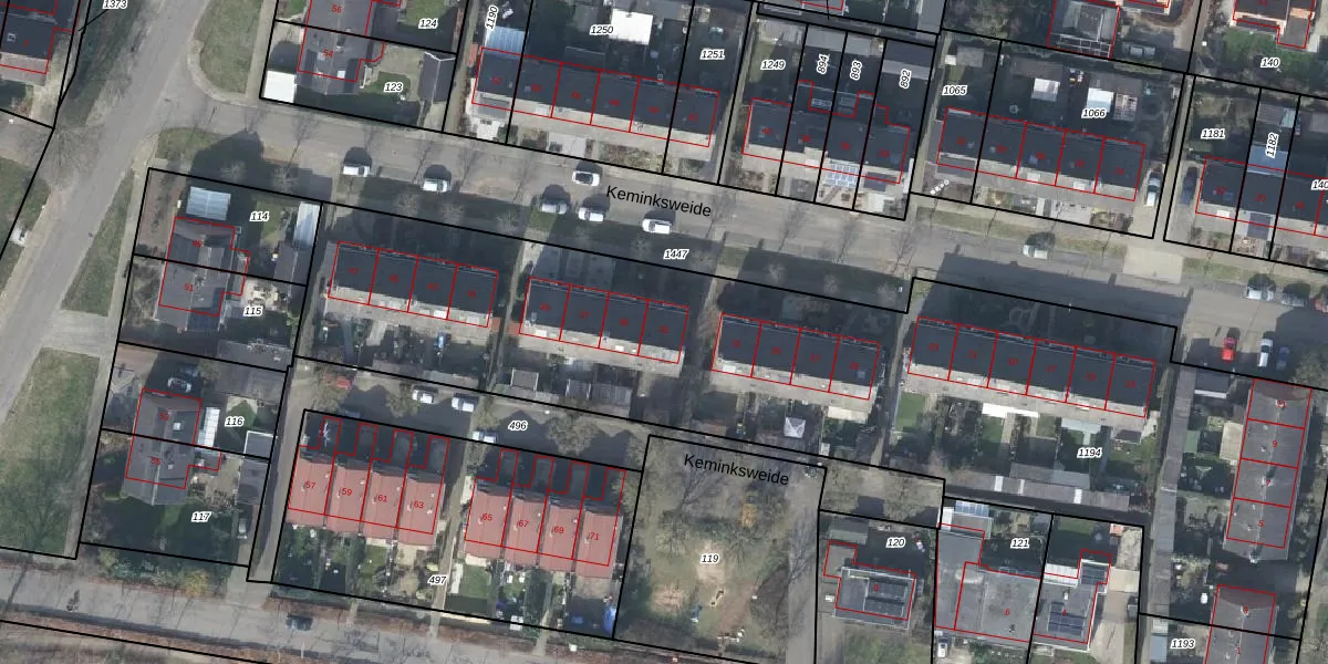 Het perceel waarop Keminksweide 33 staat heeft een oppervlakte van 4302 m². Dit is een zeer groot perceel. De perceeloppervlakte wordt geregistreerd door het Kadaster. Gedetailleerde informatie over de maten van dit perceel kunt u vinden in het rapport Kadastrale kaart met maatvoering van Keminksweide 33.