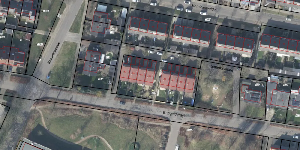 Keminksweide 63 is gelegen op kadastraal perceel DPL00E497. Deze kadastrale aanduiding is uniek en wordt gebruikt door het Kadaster om eigendomsrechten en andere zakelijke rechten vast te leggen. Het perceel maakt onderdeel uit van de kadastrale gemeente Dinxperlo.