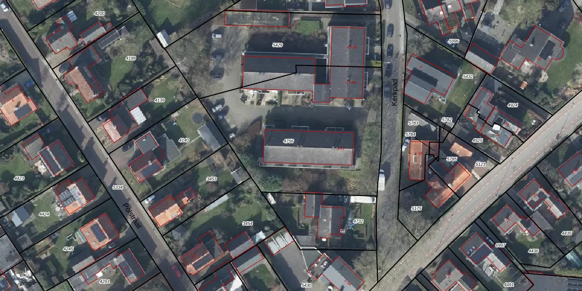 Het perceel waarop Kerkpad 19 staat heeft een oppervlakte van 2165 m². Dit is een zeer groot perceel. De perceeloppervlakte wordt geregistreerd door het Kadaster. Gedetailleerde informatie over de maten van dit perceel kunt u vinden in het rapport Kadastrale kaart met maatvoering van Kerkpad 19.