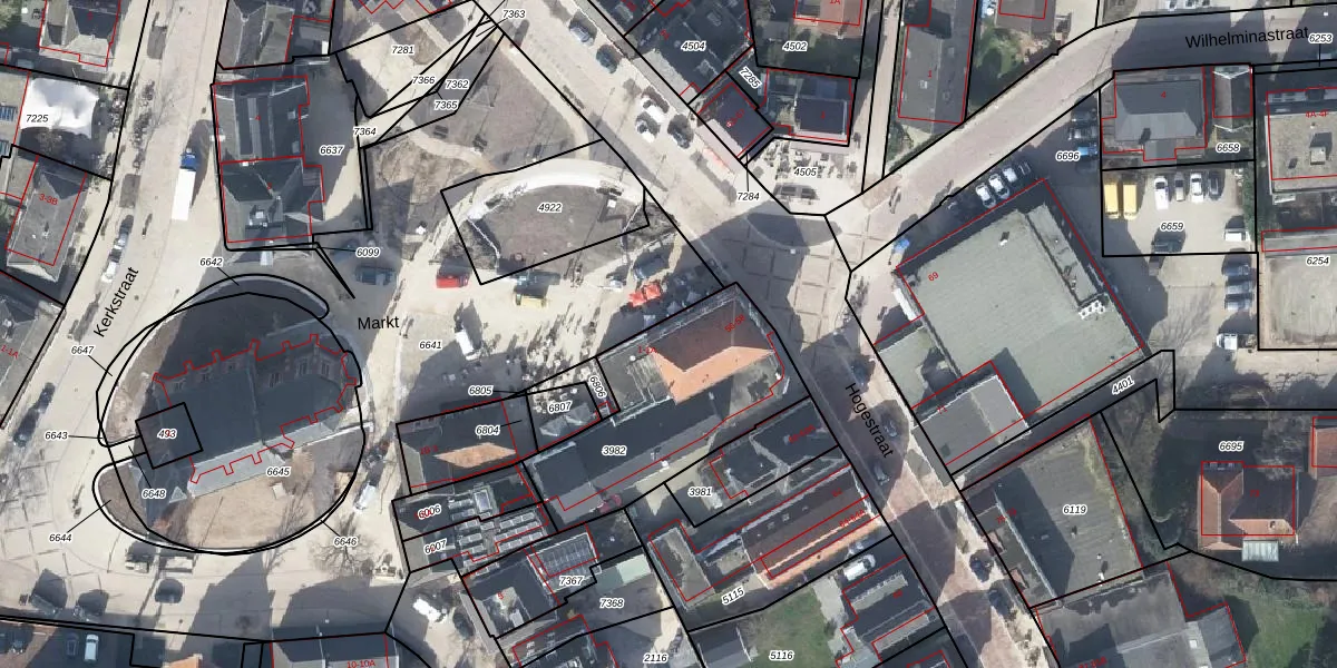 Het perceel waarop Markt 1 staat heeft een oppervlakte van 733 m². Dit is een groot perceel. De perceeloppervlakte wordt geregistreerd door het Kadaster. Gedetailleerde informatie over de maten van dit perceel kunt u vinden in het rapport Kadastrale kaart met maatvoering van Markt 1.