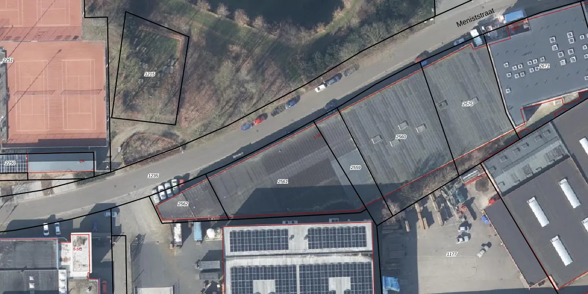 Het perceel waarop Meniststraat 1-A-02 staat heeft een oppervlakte van 1100 m². Dit is een zeer groot perceel. De perceeloppervlakte wordt geregistreerd door het Kadaster. Gedetailleerde informatie over de maten van dit perceel kunt u vinden in het rapport Kadastrale kaart met maatvoering van Meniststraat 1-A-02.