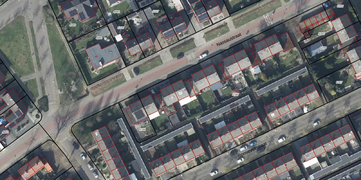 Het perceel waarop Nassaustraat 8 staat heeft een oppervlakte van 6895 m². Dit is een zeer groot perceel. De perceeloppervlakte wordt geregistreerd door het Kadaster. Gedetailleerde informatie over de maten van dit perceel kunt u vinden in het rapport Kadastrale kaart met maatvoering van Nassaustraat 8.