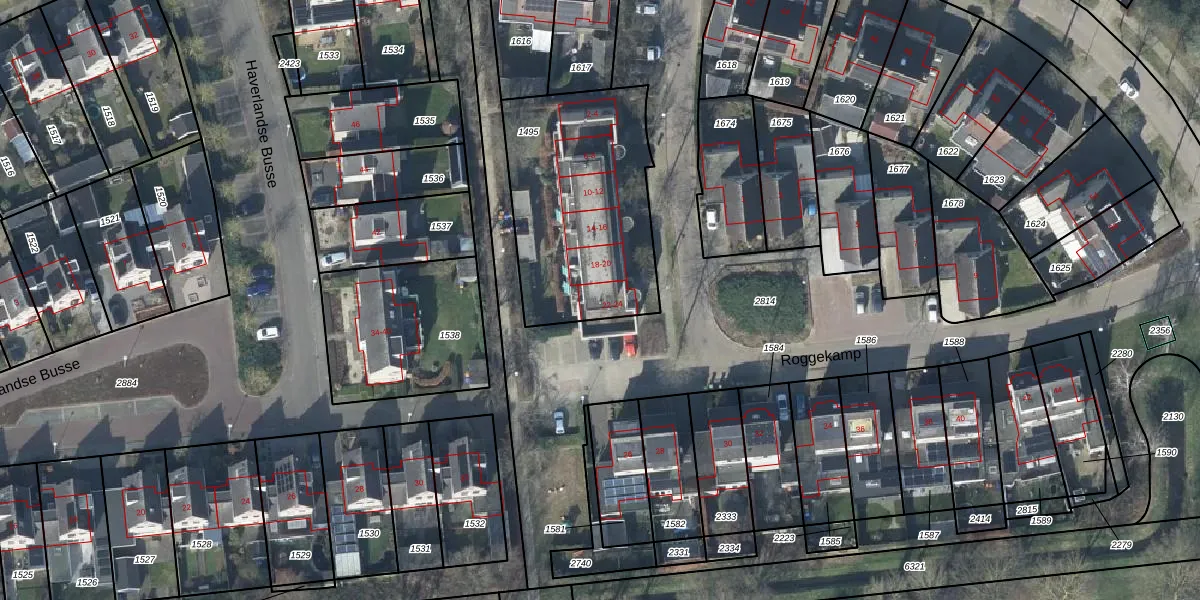 Het perceel waarop Roggekamp 24 staat heeft een oppervlakte van 875 m². Dit is een groot perceel. De perceeloppervlakte wordt geregistreerd door het Kadaster. Gedetailleerde informatie over de maten van dit perceel kunt u vinden in het rapport Kadastrale kaart met maatvoering van Roggekamp 24.