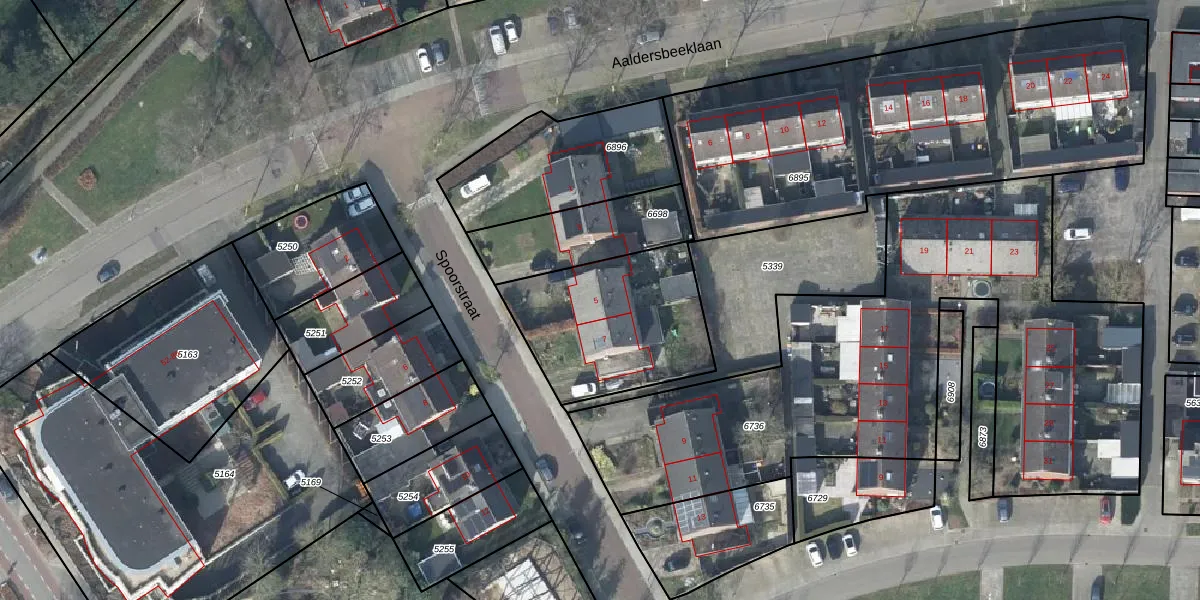 Het perceel waarop Spoorstraat 5 staat heeft een oppervlakte van 2585 m². Dit is een zeer groot perceel. De perceeloppervlakte wordt geregistreerd door het Kadaster. Gedetailleerde informatie over de maten van dit perceel kunt u vinden in het rapport Kadastrale kaart met maatvoering van Spoorstraat 5.