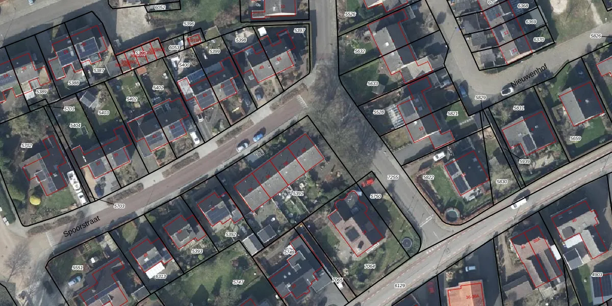Het perceel waarop Spoorstraat 60 staat heeft een oppervlakte van 1016 m². Dit is een zeer groot perceel. De perceeloppervlakte wordt geregistreerd door het Kadaster. Gedetailleerde informatie over de maten van dit perceel kunt u vinden in het rapport Kadastrale kaart met maatvoering van Spoorstraat 60.