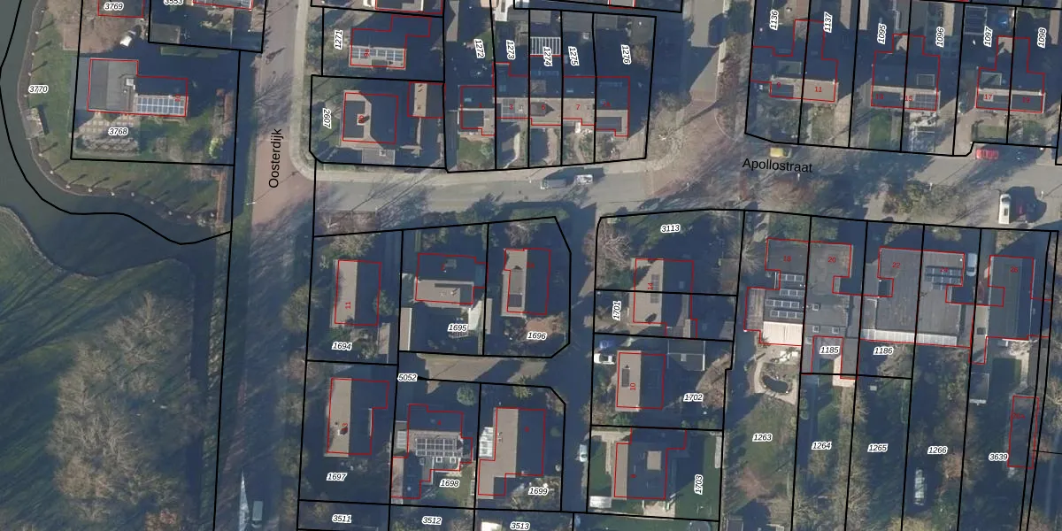 Gebruik de zoekbalk of klik op een perceel voor informatie over de adressen binnen dit perceel.
