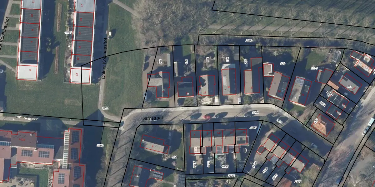 Het perceel waarop Damstraat 11 staat heeft een oppervlakte van 388 m². Dit is een groot perceel. De perceeloppervlakte wordt geregistreerd door het Kadaster. Gedetailleerde informatie over de maten van dit perceel kunt u vinden in het rapport Kadastrale kaart met maatvoering van Damstraat 11.
