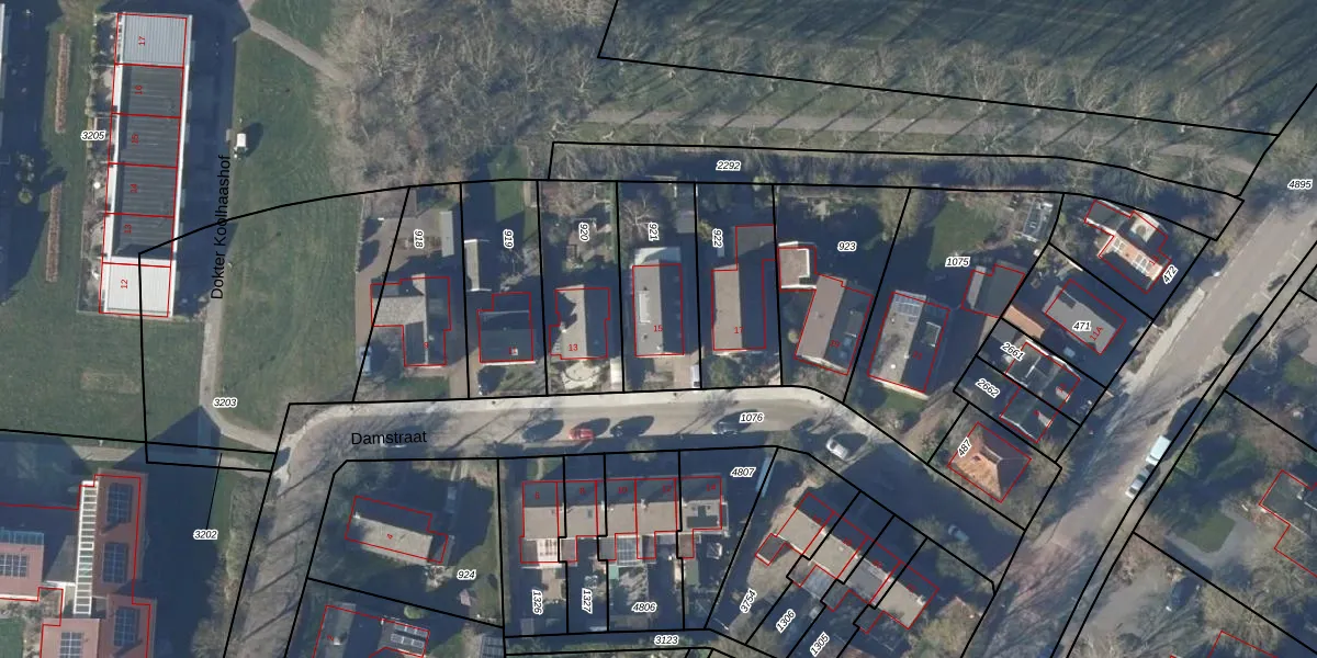 Het perceel waarop Damstraat 15 staat heeft een oppervlakte van 383 m². Dit is een groot perceel. De perceeloppervlakte wordt geregistreerd door het Kadaster. Gedetailleerde informatie over de maten van dit perceel kunt u vinden in het rapport Kadastrale kaart met maatvoering van Damstraat 15.