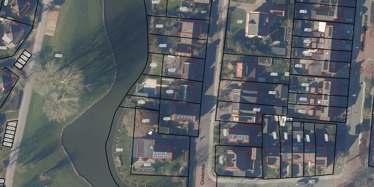Het perceel waarop Oosterdijk 8 staat heeft een oppervlakte van 255 m². Dit is een middelgroot perceel. De perceeloppervlakte wordt geregistreerd door het Kadaster. Gedetailleerde informatie over de maten van dit perceel kunt u vinden in het rapport Kadastrale kaart met maatvoering van Oosterdijk 8.