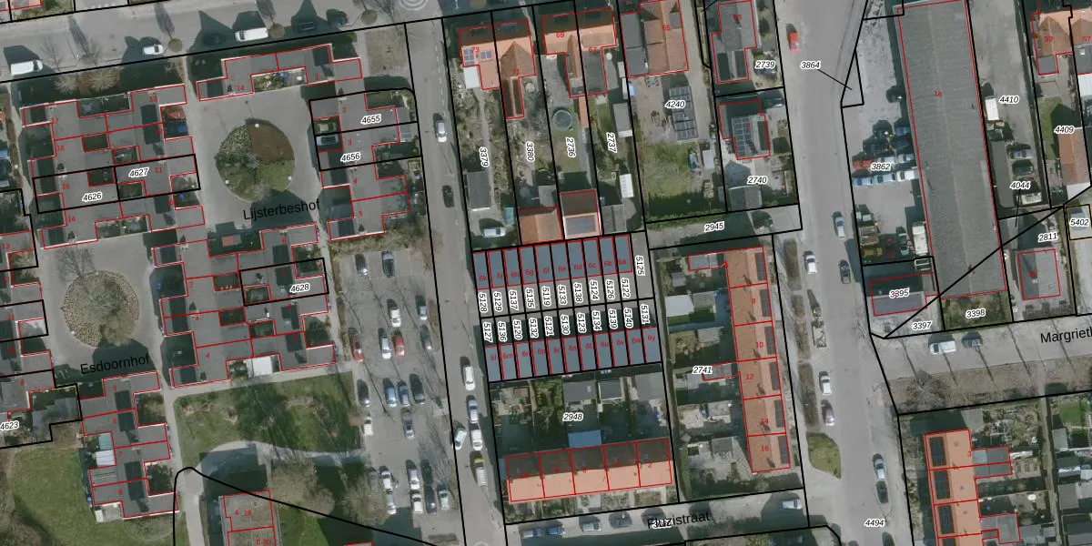 Gebruik de zoekbalk of klik op een perceel voor informatie over de adressen binnen dit perceel.