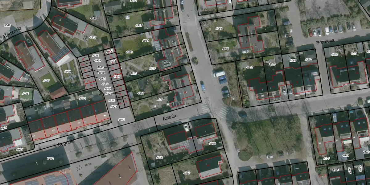 Het perceel waarop Bromelia 16 staat heeft een oppervlakte van 398 m². Dit is een groot perceel. De perceeloppervlakte wordt geregistreerd door het Kadaster. Gedetailleerde informatie over de maten van dit perceel kunt u vinden in het rapport Kadastrale kaart met maatvoering van Bromelia 16.