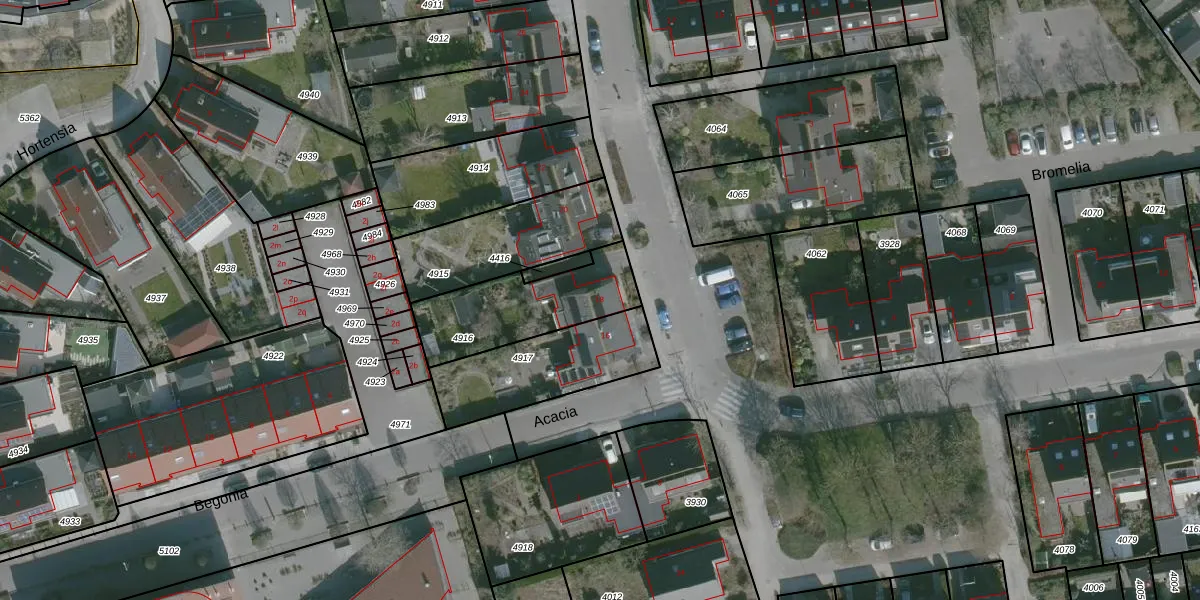 Het perceel waarop Bromelia 18 staat heeft een oppervlakte van 388 m². Dit is een groot perceel. De perceeloppervlakte wordt geregistreerd door het Kadaster. Gedetailleerde informatie over de maten van dit perceel kunt u vinden in het rapport Kadastrale kaart met maatvoering van Bromelia 18.
