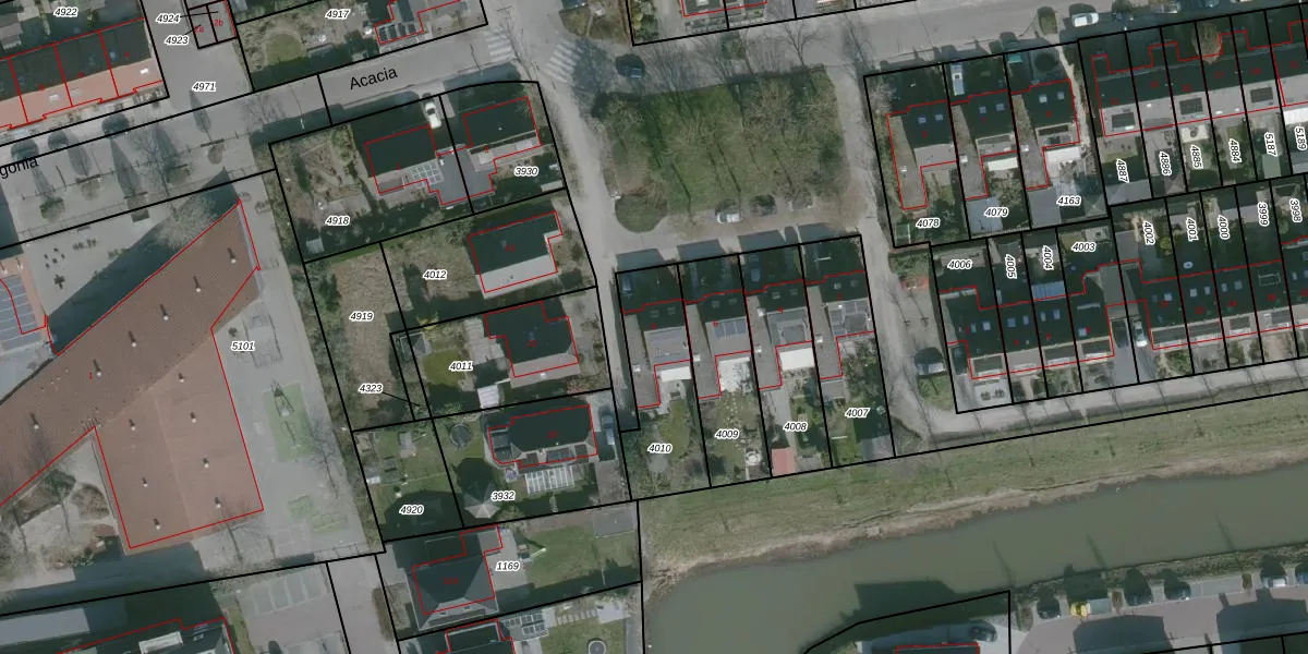 Het adres is gelegen op perceel 4010 in de sectie B en de kadastrale gemeente Dirksland. De kadastrale aanduiding is aldus DLD00-B-4010. Het perceel is kleiner dan gemiddeld in Dirksland. Het perceel is 360 m² groot, terwijl het gemiddelde ligt op 1,2 ha. De grootste perceeloppervlakte in de kadastrale gemeente is 5,01 km². De kleinste oppervlakte bedraagt 0 m². Er zijn geen andere adressen aanwezig op het perceel. In de Basisregistratie Kadaster (BRK) werden de grenzen van het perceel geregistreerd op 04-09-2019.