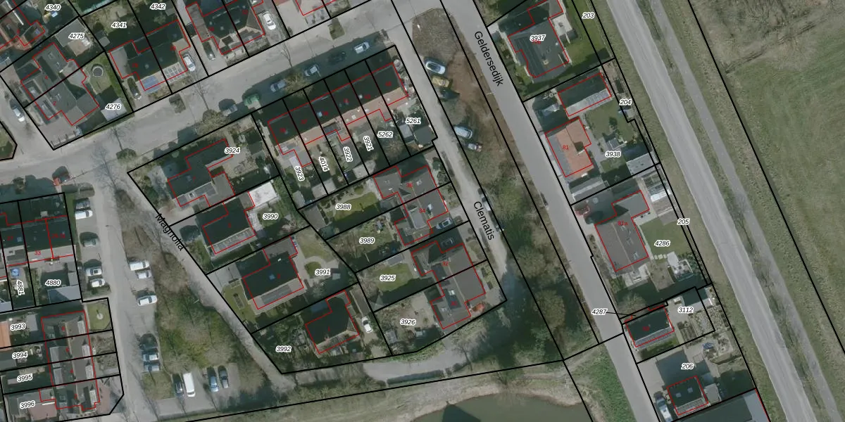 Gebruik de zoekbalk of klik op een perceel voor informatie over de adressen binnen dit perceel.