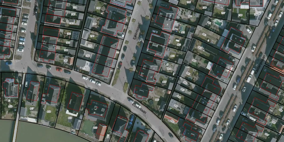 Gebruik de zoekbalk of klik op een perceel voor informatie over de adressen binnen dit perceel.