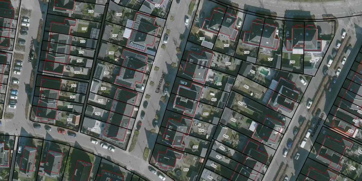 Gebruik de zoekbalk of klik op een perceel voor informatie over de adressen binnen dit perceel.