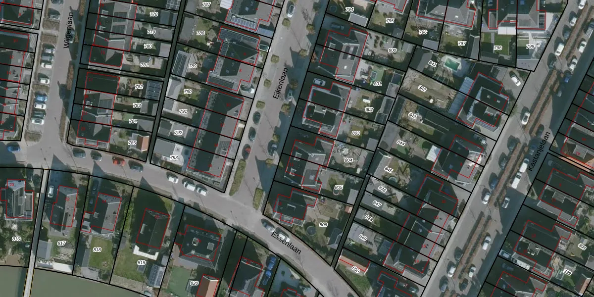 Eikenlaan 9 is gelegen op kadastraal perceel DLD00G804. Deze kadastrale aanduiding is uniek en wordt gebruikt door het Kadaster om eigendomsrechten en andere zakelijke rechten vast te leggen. Het perceel maakt onderdeel uit van de kadastrale gemeente Dirksland.
