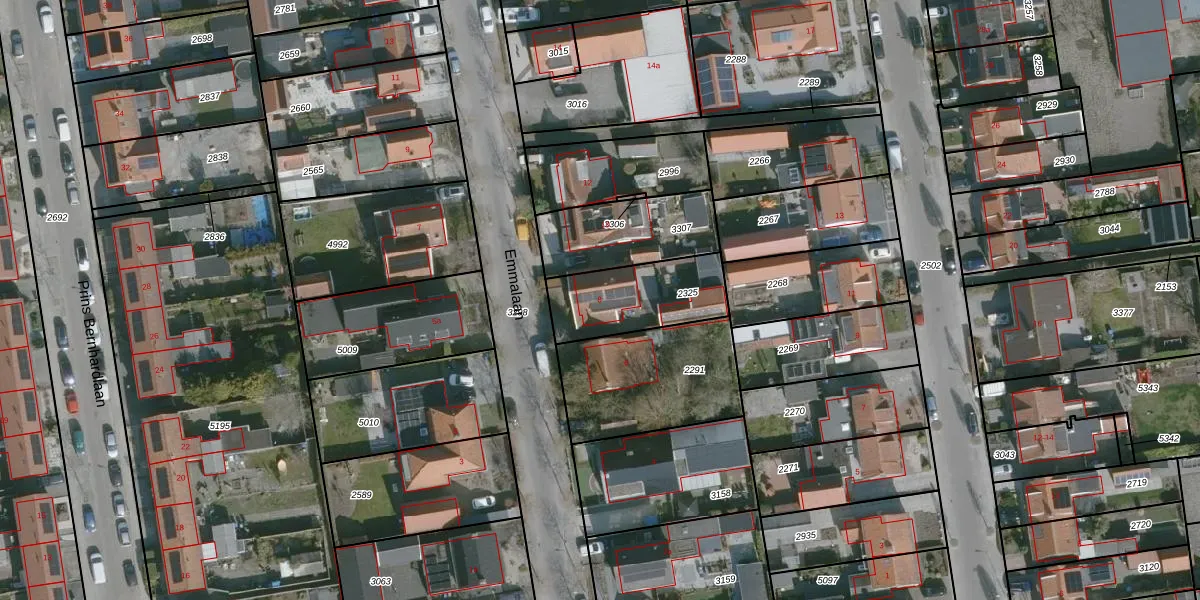 Gebruik de zoekbalk of klik op een perceel voor informatie over de adressen binnen dit perceel.