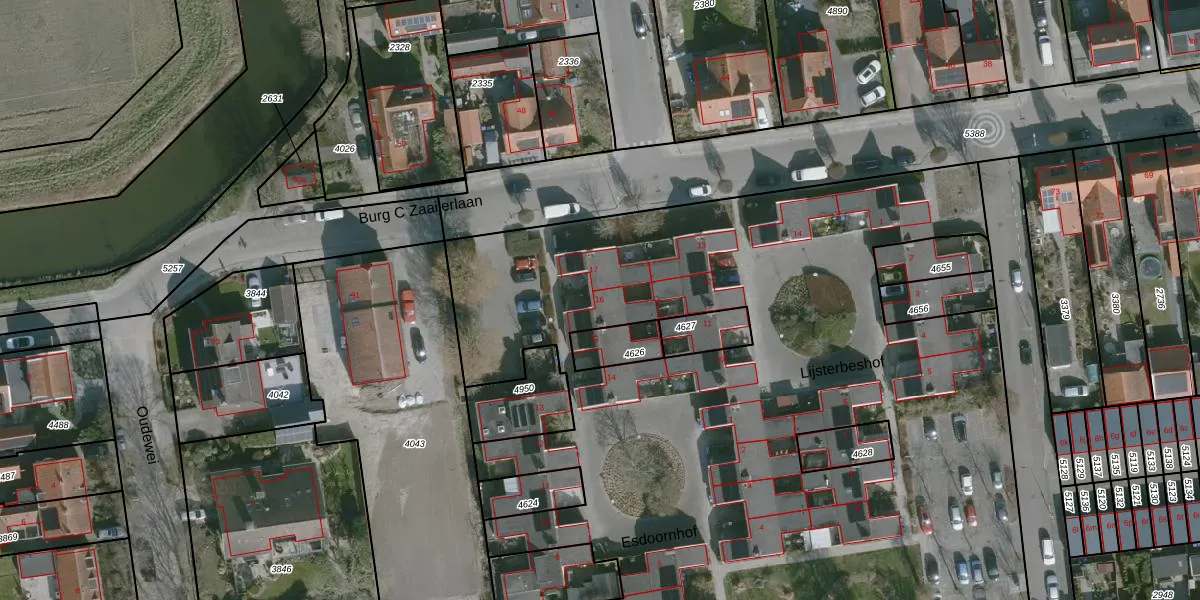 Esdoornhof 16 is gelegen op kadastraal perceel DLD00B4949. Deze kadastrale aanduiding is uniek en wordt gebruikt door het Kadaster om eigendomsrechten en andere zakelijke rechten vast te leggen. Het perceel maakt onderdeel uit van de kadastrale gemeente Dirksland.