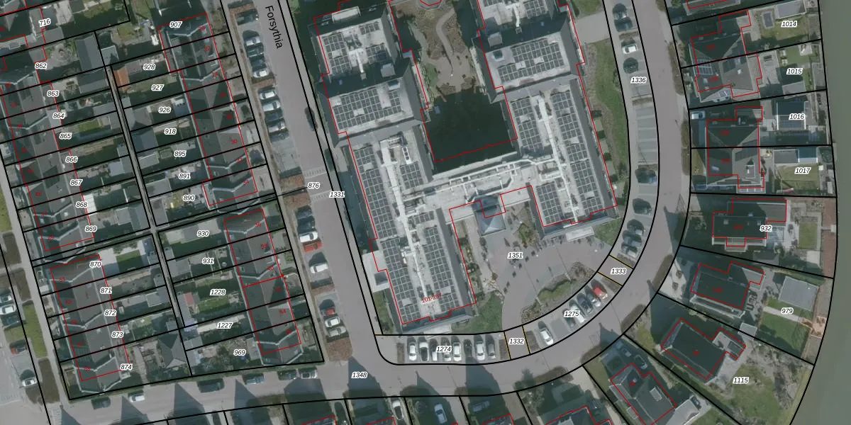 Het adres ligt op het perceel DLD00-G-1351, dat zich in de kadastrale gemeente Dirksland bevindt. De gemiddelde perceelgrootte in Dirksland is 1,2 ha. Dit perceel is kleiner: de perceeloppervlakte bedraagt 6127 m². Het grootste perceel in de kadastrale gemeente is 5,01 km². Het kleinste perceel heeft een oppervlakte van 0 m². Op het perceel zijn 79 adressen aanwezig. In de Basisregistratie Kadaster (BRK) werden de grenzen van het perceel geregistreerd op 16-10-2025.