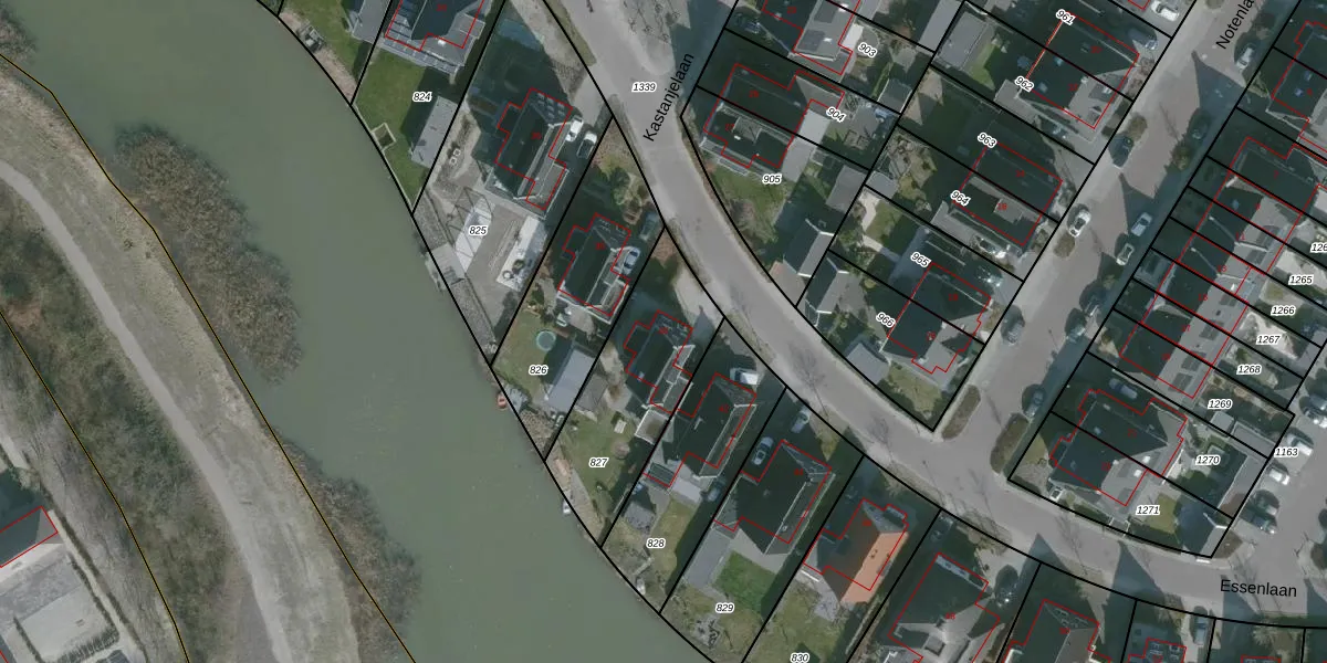 Essenlaan 40 is gelegen op kadastraal perceel DLD00G827. Deze kadastrale aanduiding is uniek en wordt gebruikt door het Kadaster om eigendomsrechten en andere zakelijke rechten vast te leggen. Het perceel maakt onderdeel uit van de kadastrale gemeente Dirksland.