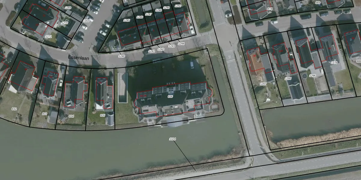 Essenlaan 62 is gelegen op kadastraal perceel DLD00G836. Deze kadastrale aanduiding is uniek en wordt gebruikt door het Kadaster om eigendomsrechten en andere zakelijke rechten vast te leggen. Het perceel maakt onderdeel uit van de kadastrale gemeente Dirksland.