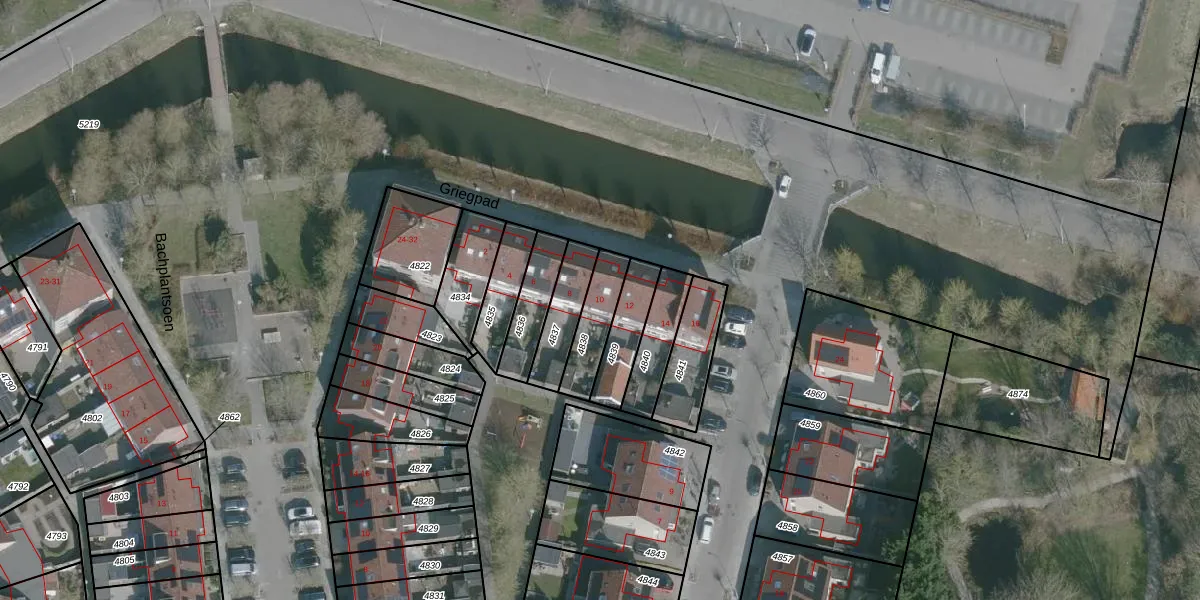 Griegpad 10 is gelegen op kadastraal perceel DLD00B4838. Deze kadastrale aanduiding is uniek en wordt gebruikt door het Kadaster om eigendomsrechten en andere zakelijke rechten vast te leggen. Het perceel maakt onderdeel uit van de kadastrale gemeente Dirksland.