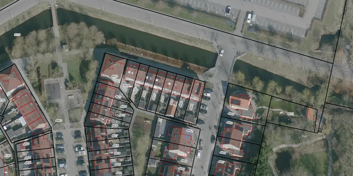Gebruik de zoekbalk of klik op een perceel voor informatie over de adressen binnen dit perceel.