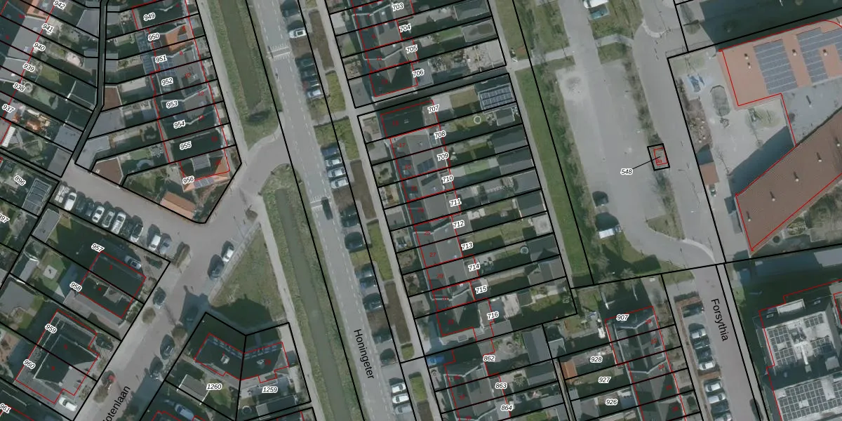 Het perceel waarop Honingeter 23 staat heeft een oppervlakte van 202 m². Dit is een middelgroot perceel. De perceeloppervlakte wordt geregistreerd door het Kadaster. Gedetailleerde informatie over de maten van dit perceel kunt u vinden in het rapport Kadastrale kaart met maatvoering van Honingeter 23.