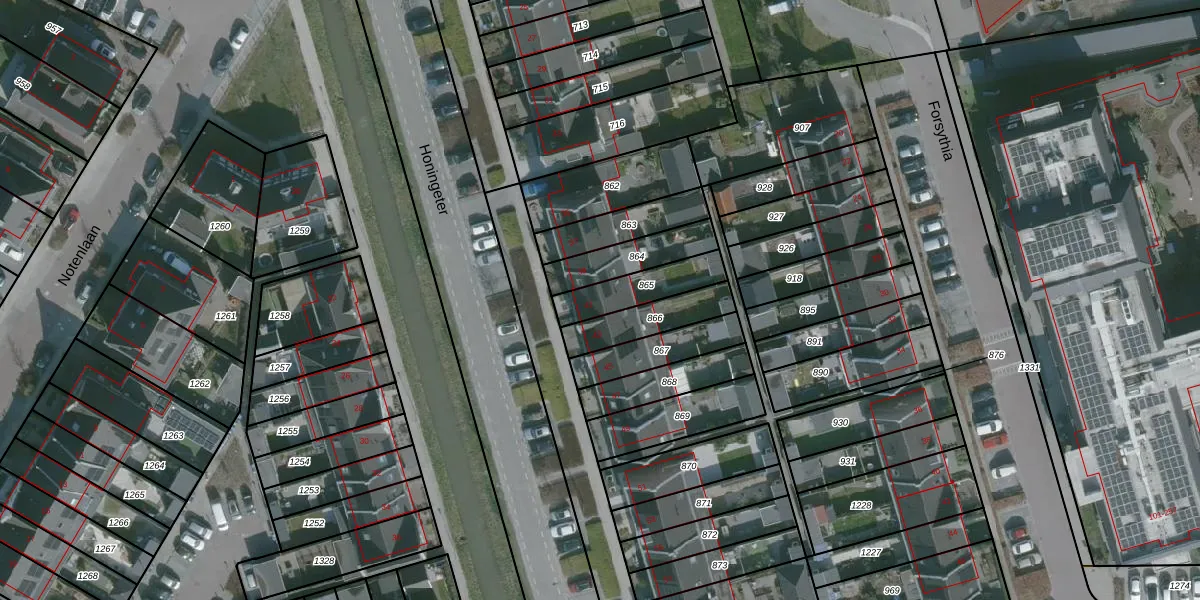 Het perceel waarop Honingeter 41 staat heeft een oppervlakte van 157 m². Dit is een middelgroot perceel. De perceeloppervlakte wordt geregistreerd door het Kadaster. Gedetailleerde informatie over de maten van dit perceel kunt u vinden in het rapport Kadastrale kaart met maatvoering van Honingeter 41.