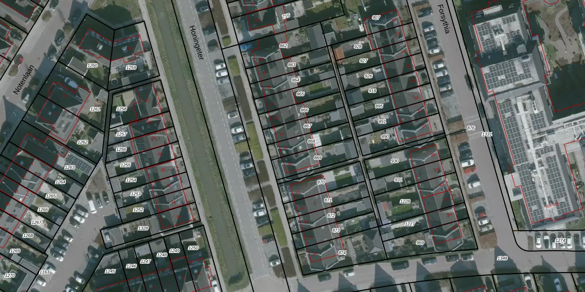 Het perceel waarop Honingeter 47 staat heeft een oppervlakte van 157 m². Dit is een middelgroot perceel. De perceeloppervlakte wordt geregistreerd door het Kadaster. Gedetailleerde informatie over de maten van dit perceel kunt u vinden in het rapport Kadastrale kaart met maatvoering van Honingeter 47.