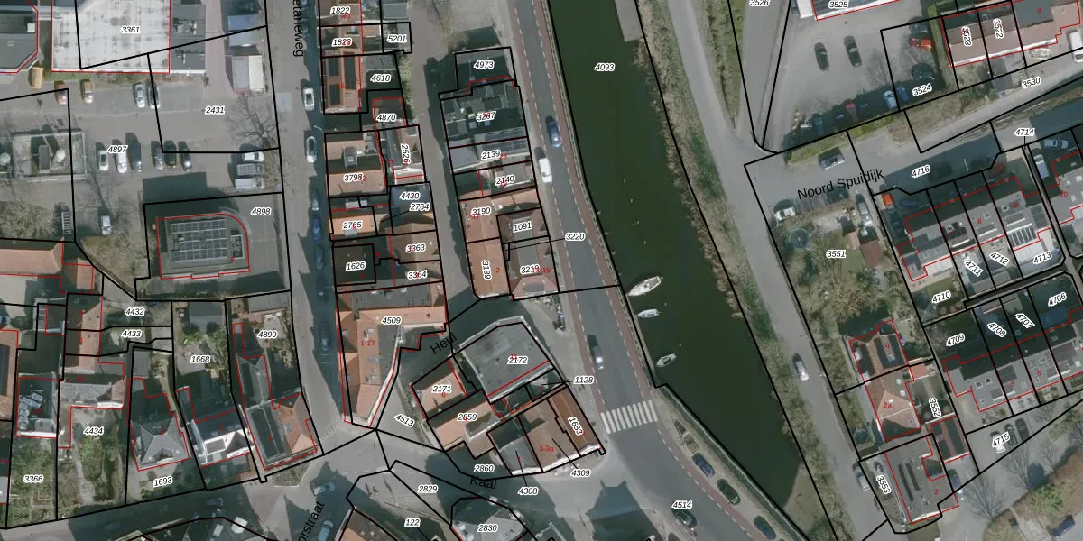 Het perceel waarop Kaai 13 staat heeft een oppervlakte van 92 m². Dit is een klein perceel. De perceeloppervlakte wordt geregistreerd door het Kadaster. Gedetailleerde informatie over de maten van dit perceel kunt u vinden in het rapport Kadastrale kaart met maatvoering van Kaai 13.