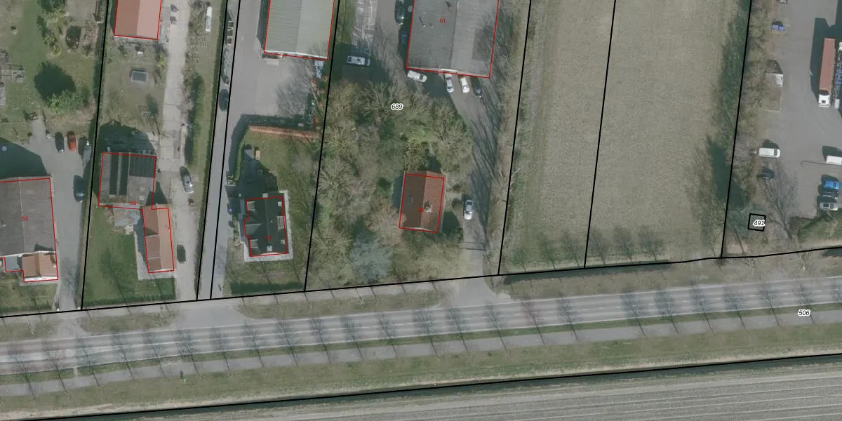 Het adres is gelegen op perceel 689 in de sectie H en de kadastrale gemeente Dirksland. De kadastrale aanduiding is aldus DLD00-H-689. Het perceel is 6500 m² groot. Dat is kleiner dan de gemiddelde perceeloppervlakte in Dirksland, dat op 1,2 ha ligt. De grootste perceeloppervlakte in de kadastrale gemeente is 5,01 km². De kleinste oppervlakte bedraagt 0 m². Op het perceel liggen in totaal 2 adressen. De huidige grenzen van het perceel zijn digitaal in de Basisregistratie Kadaster (BRK) geregistreerd op 29-10-2008.