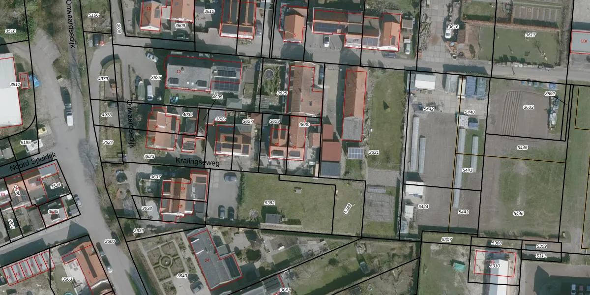 Gebruik de zoekbalk of klik op een perceel voor informatie over de adressen binnen dit perceel.