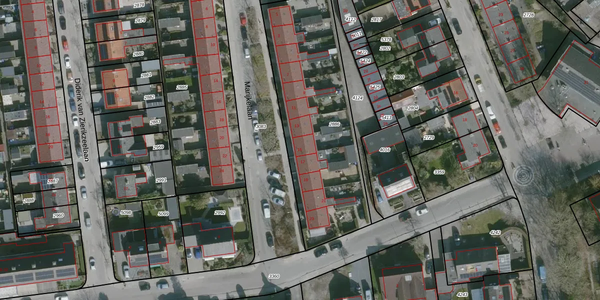 Marijkelaan 15 is gelegen op kadastraal perceel DLD00B2886. Deze kadastrale aanduiding is uniek en wordt gebruikt door het Kadaster om eigendomsrechten en andere zakelijke rechten vast te leggen. Het perceel maakt onderdeel uit van de kadastrale gemeente Dirksland.
