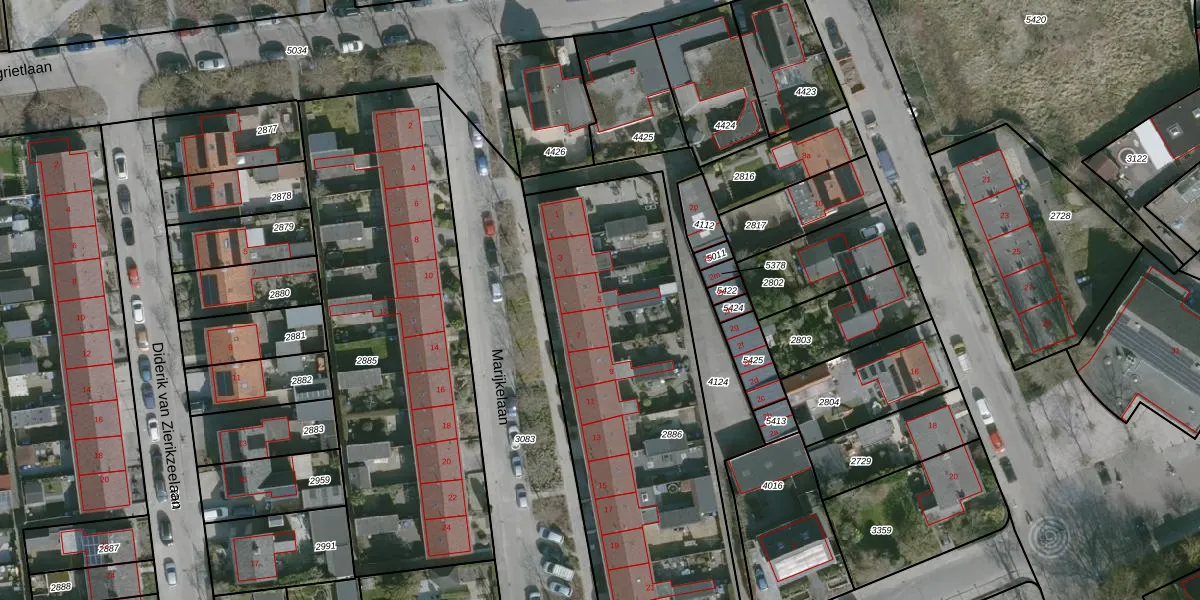 Marijkelaan 5 is gelegen op kadastraal perceel DLD00B2886. Deze kadastrale aanduiding is uniek en wordt gebruikt door het Kadaster om eigendomsrechten en andere zakelijke rechten vast te leggen. Het perceel maakt onderdeel uit van de kadastrale gemeente Dirksland.