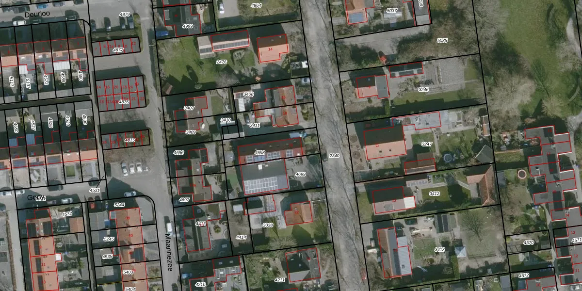 Gebruik de zoekbalk of klik op een perceel voor informatie over de adressen binnen dit perceel.